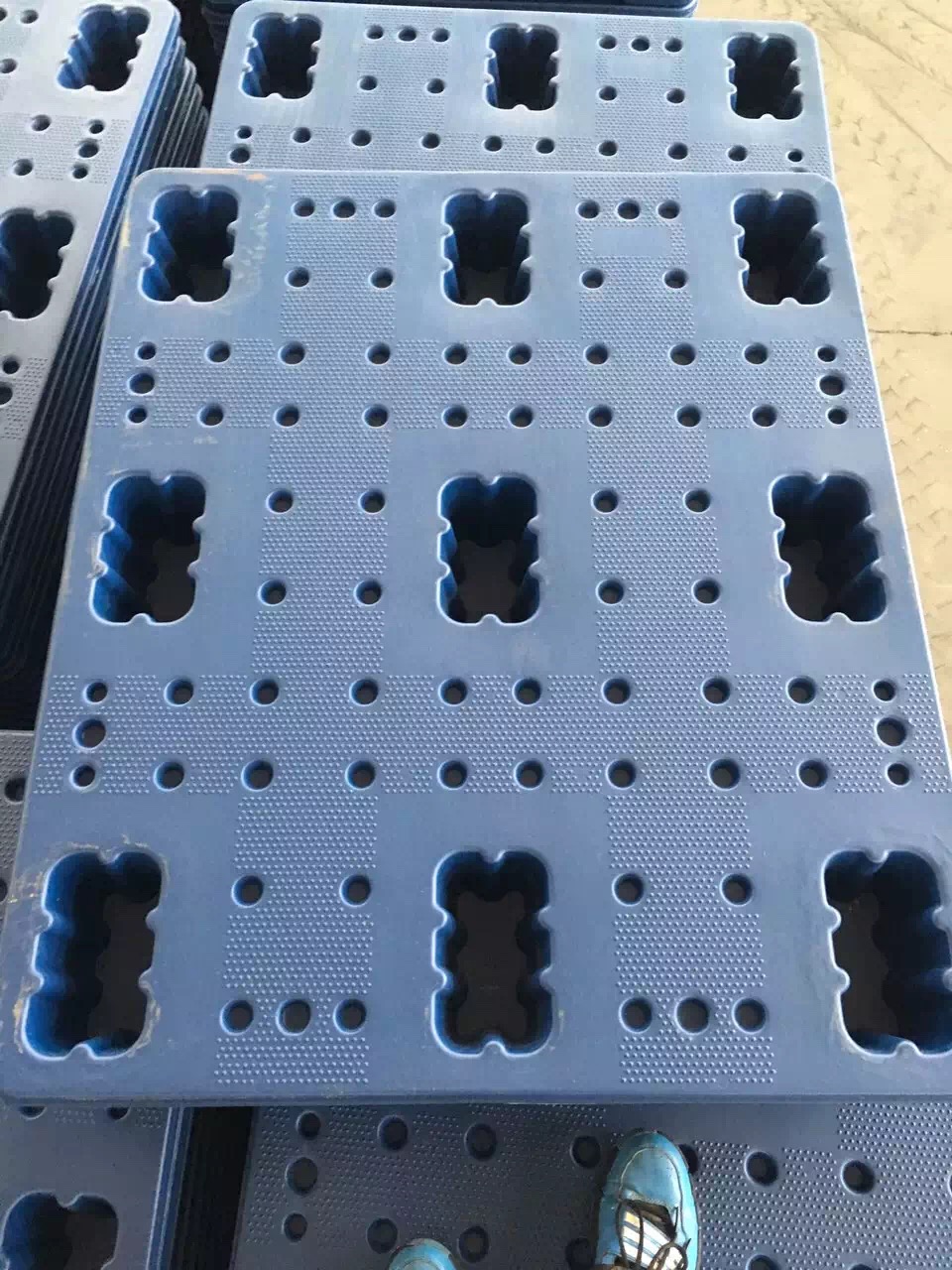5、白色的九腳網(wǎng)格托盤其資料請求更嚴,因為摻有其它資料的九腳網(wǎng)格托盤是做不出白色或半透明商品的。不過通常場合咱們更多的運用藍色(天蘭色)的九腳網(wǎng)格托盤。